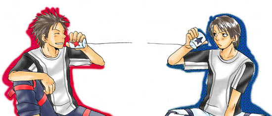 「 以心電信」 年明けに出した突発コピー本表紙イラスト。 糸電話ってアイテムをなんとなく描きたかった。 きっとバンはしょうも無いことばっか言って テツの機嫌を損ねてんだろうなあ。 プラウザバックでお戻りください