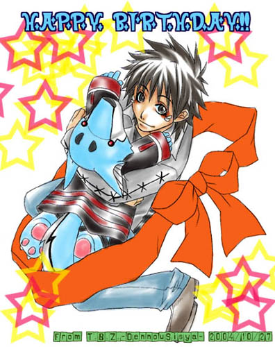 斗崎雷駿様から頂いたハピバイラ★ 可愛いワンコ二匹(?)頂けてもうメロメロなんですが、あえて一言物申させていただこう 『これおもいっきり、斗崎さんの趣味じゃん』 と。(笑) いやいや、マジ嬉しいです。でへへ。 また一緒に買い物行きましょう〜〜。 ありがとうございました。 プラウザのバックボタンでお戻りください