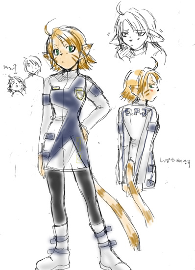 | ★オリキャラ(ユズ)★ 名前:ユズ(…フルネーム考えようかと思ったんですけど、まあいいや、と。)←おい。 マオラ=シャ星人 (地球で言う猫に外見が良く似ている。 耳が大きく、尻尾もあり、肉球は残念ながら進化の過程でなくなってしまいましたが(苦笑) 名残なのか地球人にくらべて掌はぷにぷにしております。爪の出し入れもできます。) (同じ猫科の容姿をしているチャンベーナ星人やレオン星人も元をたどればルーツは同じらしい。) (つまりネコです。) 女性 年齢:18歳(地球人でいうと) 身長153cm 特キョウ第一班所属。 テツと同様に幼い頃、アリエナイザー犯罪に巻き込まれその事件にて両親を失い、 以後、特凶の候補生として本部で育てられ、一応、特凶試験自体は合格してますが 今の所、指導員(テツ)の意向で内勤を主に命じられ、現場経験はありません。 1班内ではもちろん、新人・年下ということで、良いようにパシリに使われていることに 少々不満を感じつつも、大好きなチーフと一緒にいられることに喜びを感じております。 テツも、自分と同じ境遇で育ったユズを同情してる部分と、実質的に『初めて自分直属の部下』 ということもあり、ユズには甘いところがあり そこに漬け込もうと、特キョウさんたちはFSの某隊長との逢瀬の 妨害にとユズを送り込みますが…成果はあまりないようです。(苦笑) 性格は明るく、少し短気。特キョウにしては感情的になりやすい。 (戸増課長いわく「…なんで、こいつが特キョウになれたのか、わからん…」) テツチーフ大好き…ですが恋愛感情〜とかではなく、特キョウとしての憧れと どうにも母性本能がくすぐられてしまっているようです。 (「チーフのかわりにあたしがしっかりしなきゃ!」的な) バンを「アンニャロメ」と呼び、センちゃんを「センさま」と呼ぶ。 どうもバンに関しては「チーフはいつも(色んな意味で)泣かされてる」やら 「チーフはいつも(色んな意味で)振り回されてる」という噂話をよく耳にするがゆえに 良いイメージを持てていない模様。 バンとテツの仲は、チーフの幸せのために認めてあげたいけど… でも、アンニャロメは認めたくなーい!な感じ。 テツの部下は背がちっちゃくて「チーフ!チーフ!!」って |